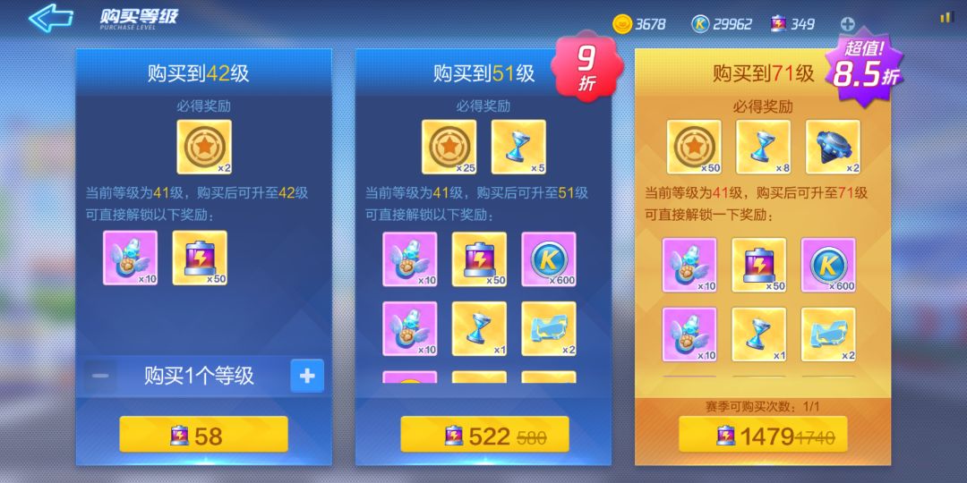 花电池买等级这些我个人不推荐 147元才能升30级 还不如做任务 省下来这些电池买其它道具 比如传说车手这些东西