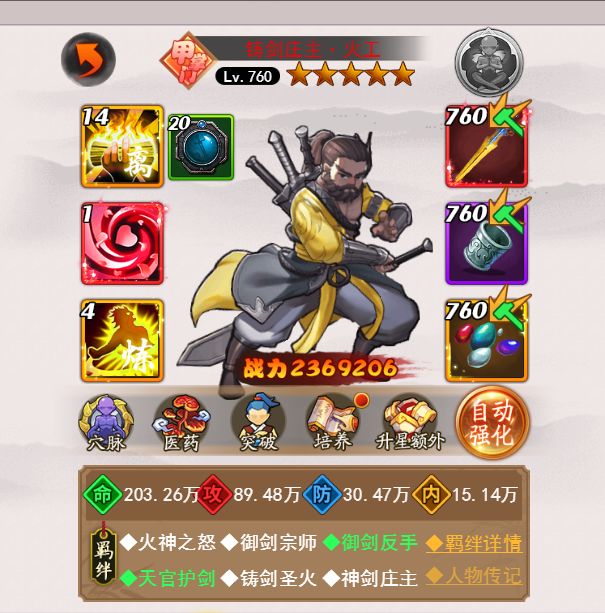 6.铸剑庄主:人物羁绊,虽然我们的反弹几率被砍了,但是我们依然很优秀,剑冢逆袭缺不了我们哥俩。我们就是跟你们同归于尽的自杀队。