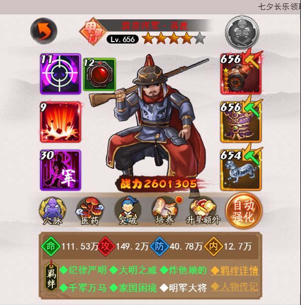 6.明军大将:人物羁绊,如果大佬你拥有多余的阎王愁,那么可以考虑3个爸爸秒天秒地秒空气了。
