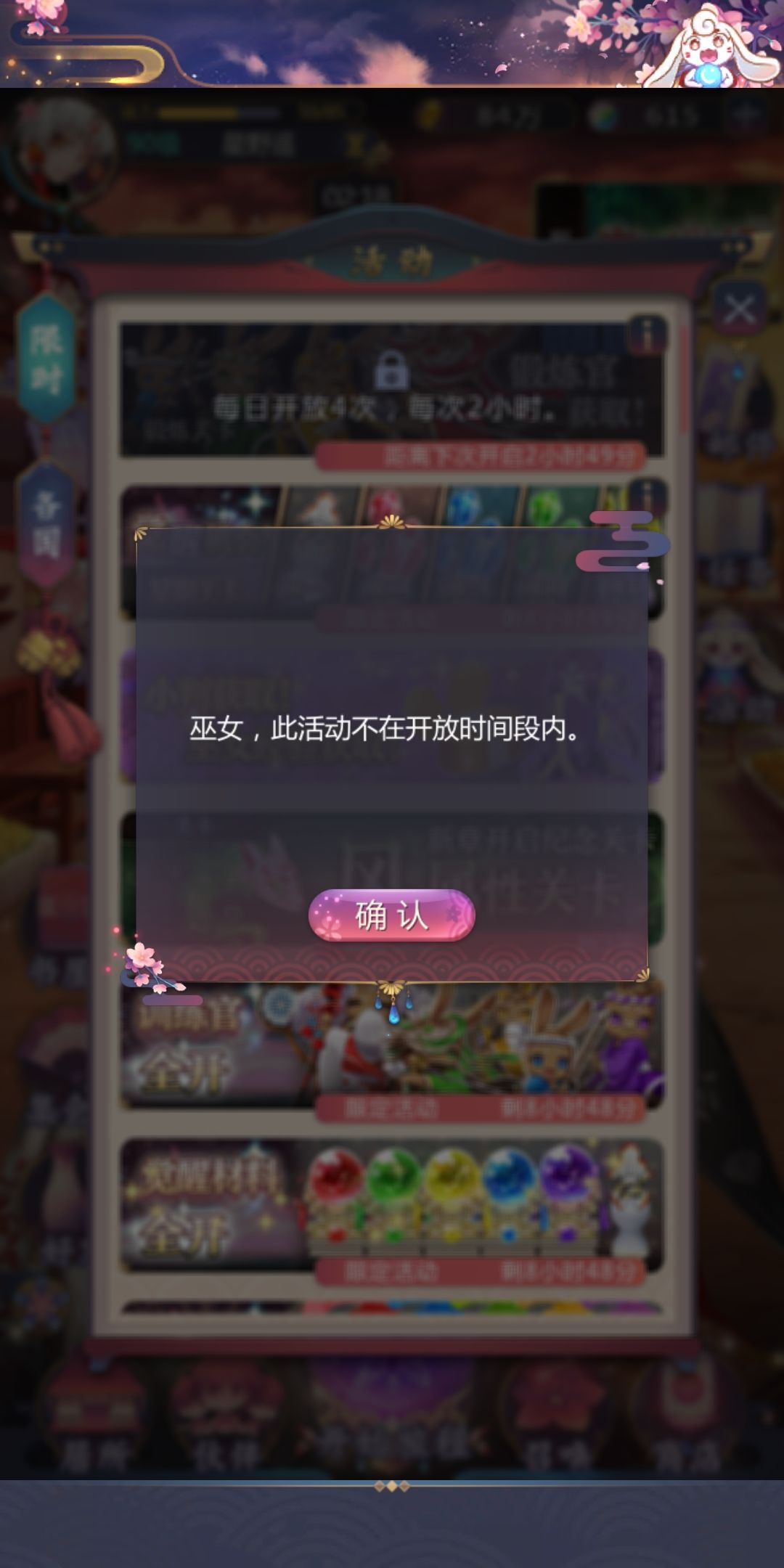 还没到时间,但双倍小判的关卡进不去了( ノД`)