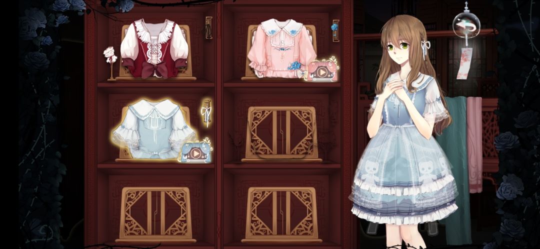 我穿了好久,一直觉得这个衣服的发饰怎么跟那件红色的一模一样,不应该吧,这下才确定是bug,应该是像这样白色的丝带,显示出来在游戏里就没了,变成初始的了。