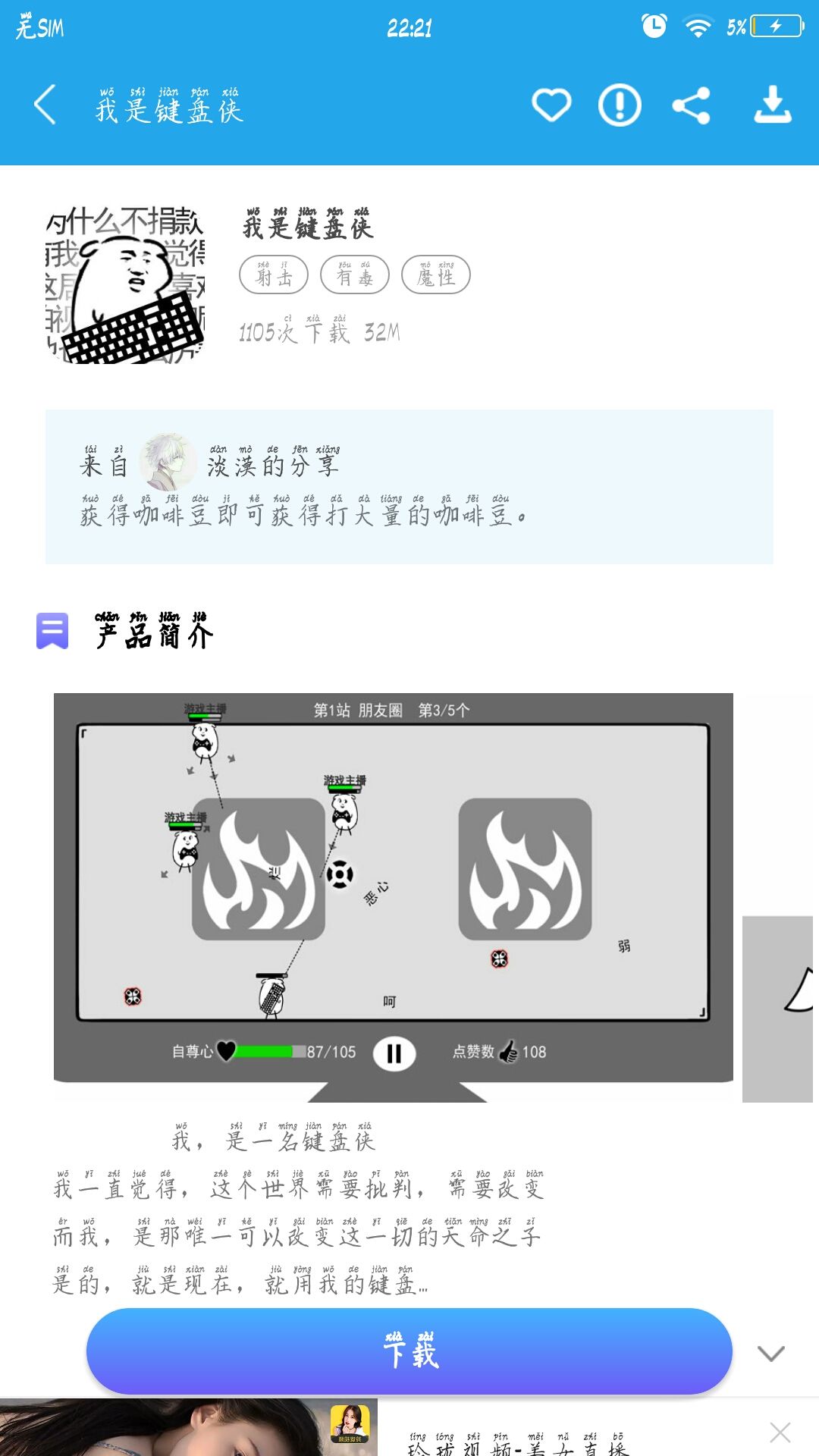 前几天玩过一款游戏,我是键盘侠
