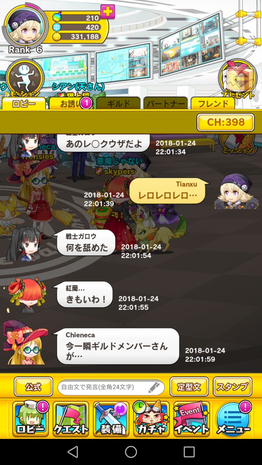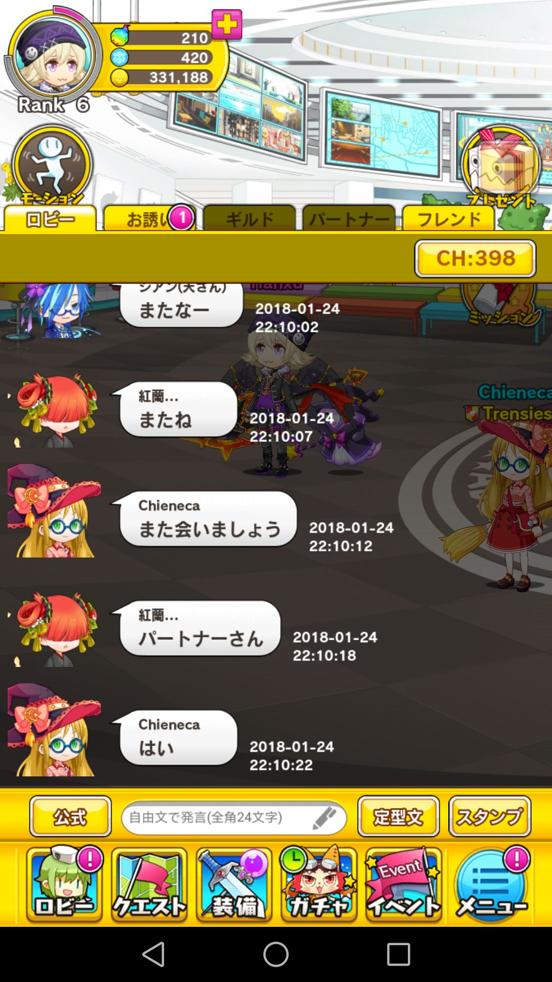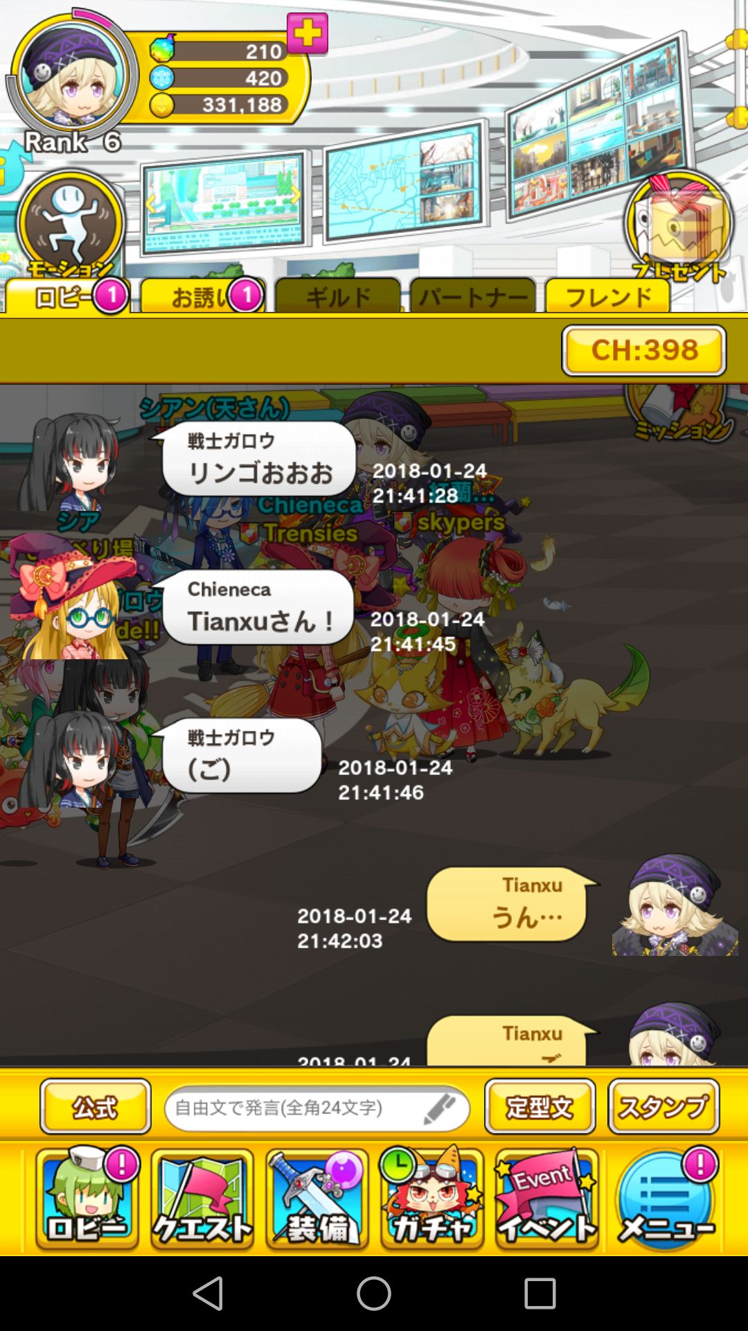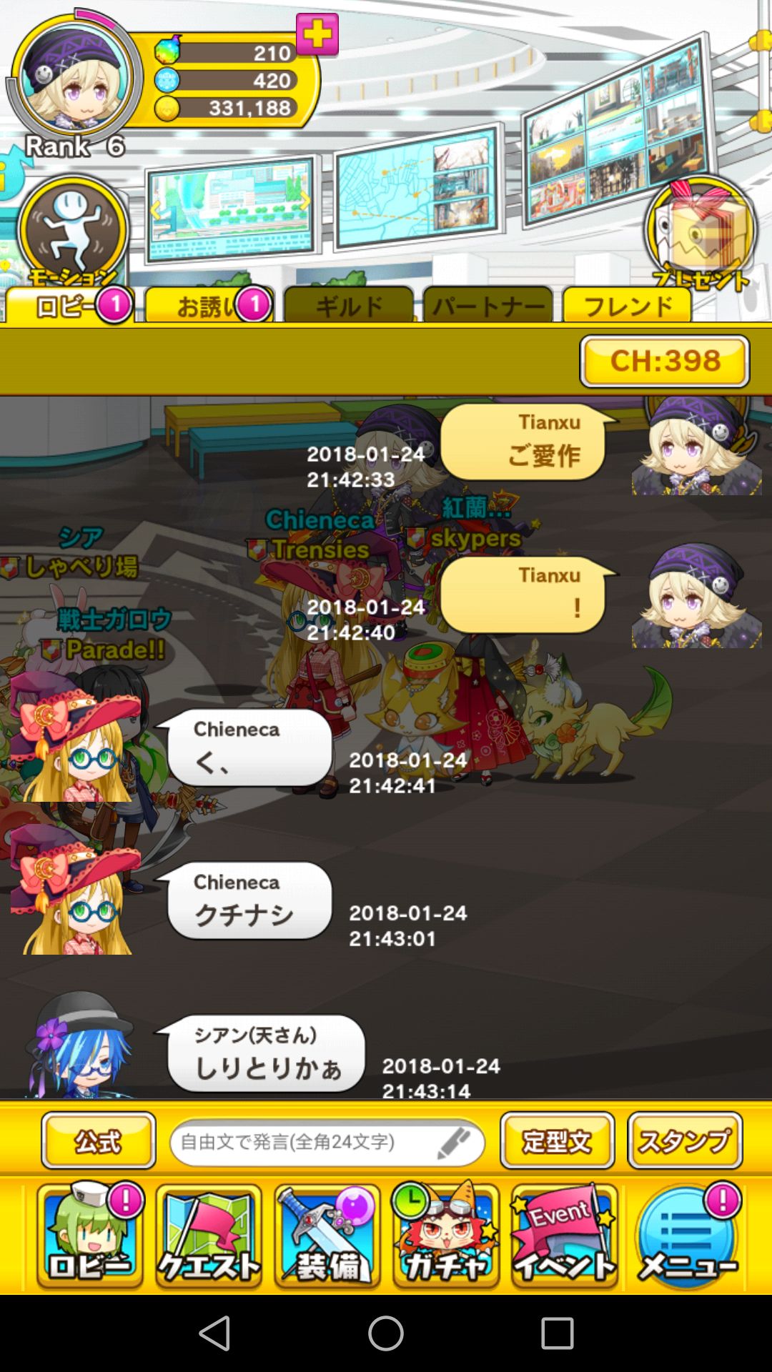 今晚上线和朋友们一起玩了成语接龙,真的很开心。纪念一下。最后约好一起去玩ミトラス这款游戏。