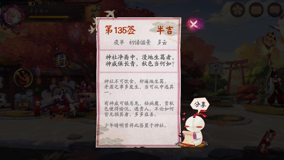 本萌新刚开始玩时进的新区,根据远古时期玩阴阳师的记忆,本打算刚开始养姑获鸟的(但是鸟姐始终抽不到,在我六十级有段时间后才抽到......)