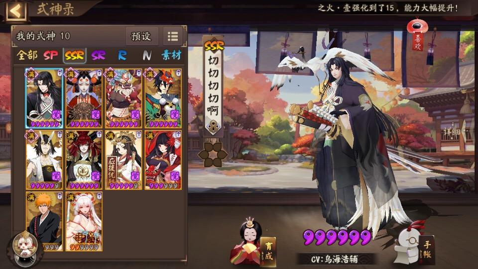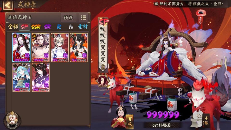中间遇到了为崽而战活动,领的票和勾玉帮助我完成了中非成就。小赚了六百万金币(头疼,乱押)还遇到了卑弥呼,大鱼丸等送ssr活动,但ssr那个召唤卷,我开到的是sp咸鱼王,大天狗,小鹿男......