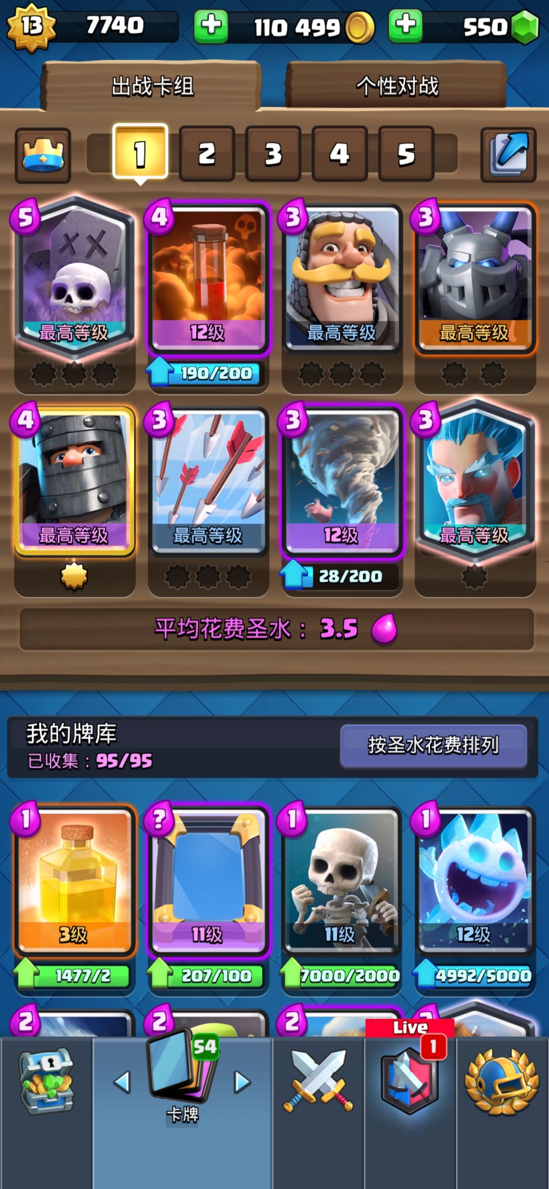 首先这卡组核心还是墓园,也算是毒墓的改版,最近万箭大改伤害提升,再加上毒药的aoe,清场的效果也是杠杠的。骑士跟黑王俩个坦克算是组织进攻跟承担伤害角色,万金油铁苍蝇没什么好说的,飓风加冰法的控场是真的恶心。这个阵容打空军是难搞哦。。。常规阵容都是5 5开,现在5500多分对手都是满级卡,心态好一些6成胜率还是能保持的。