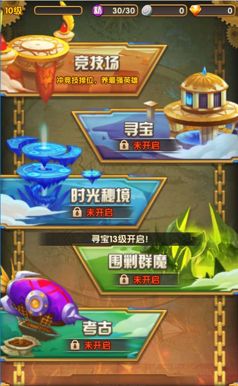 当玩家等级达到13级时开启寻宝系统。