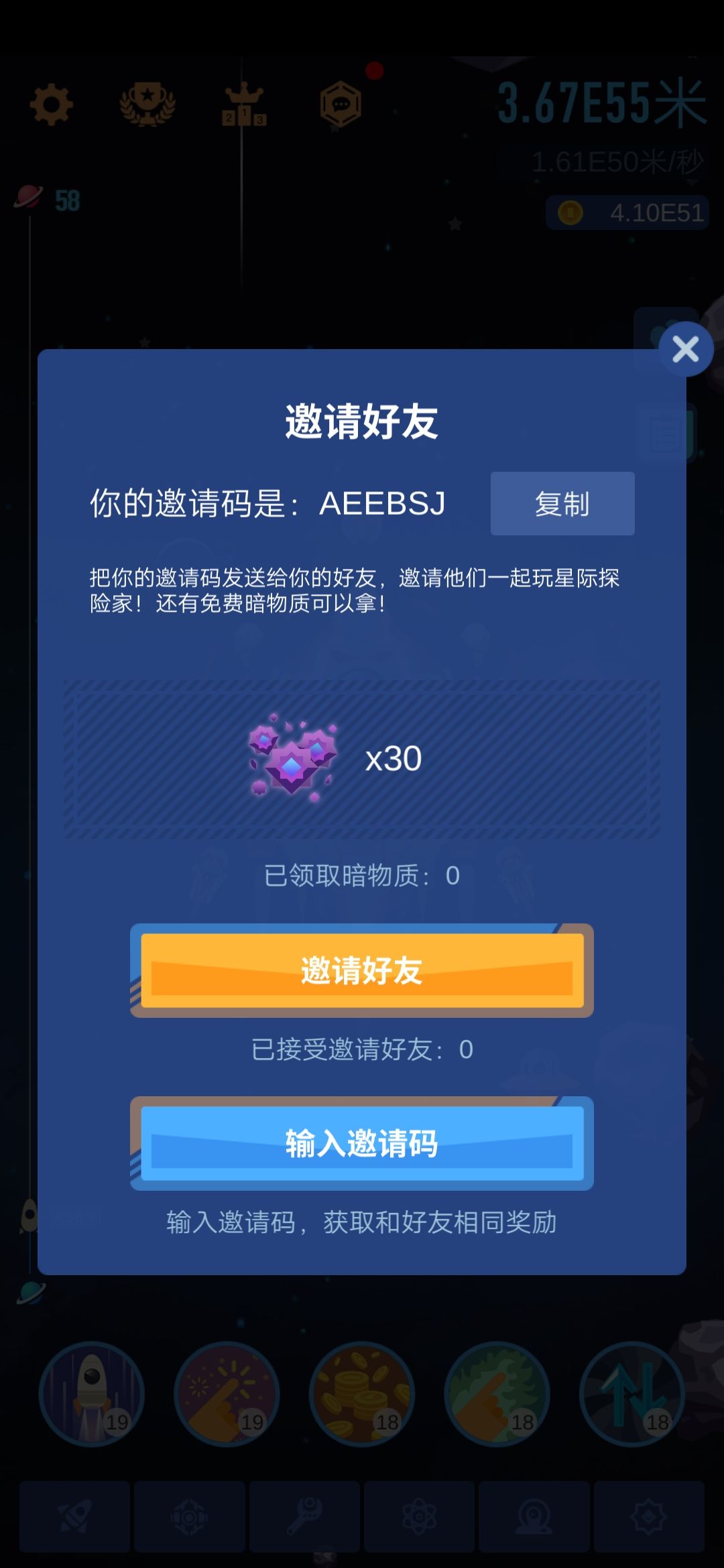 我正在探索美丽的行星和会见可爱的外星人,同时在太空探险家游戏中寻找地球人的新家园! 快来加入吧,我的邀请码:AEEBSJ,我们都会在游戏中获得奖励!