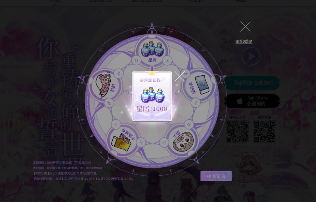 (1)虚拟奖励:星屑x1000、单抽券1张、十连抽券1张