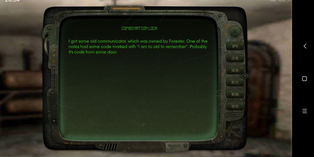 (翻译:l got some old communicator,which was owned by forester,one of the notes had some code marked with "I am to old to remember".probably it's code from some door.我得到了一些旧的通信器,这是属于福斯特的,其中一个笔记有一些代码标记为“我老了,要记住”。可能是某个门的密码)