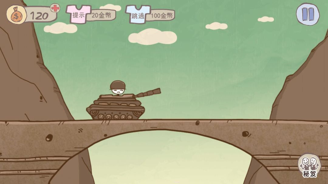 第三关 将坦克开到离桥不到的地方,把小人拎起来,让他单独过桥