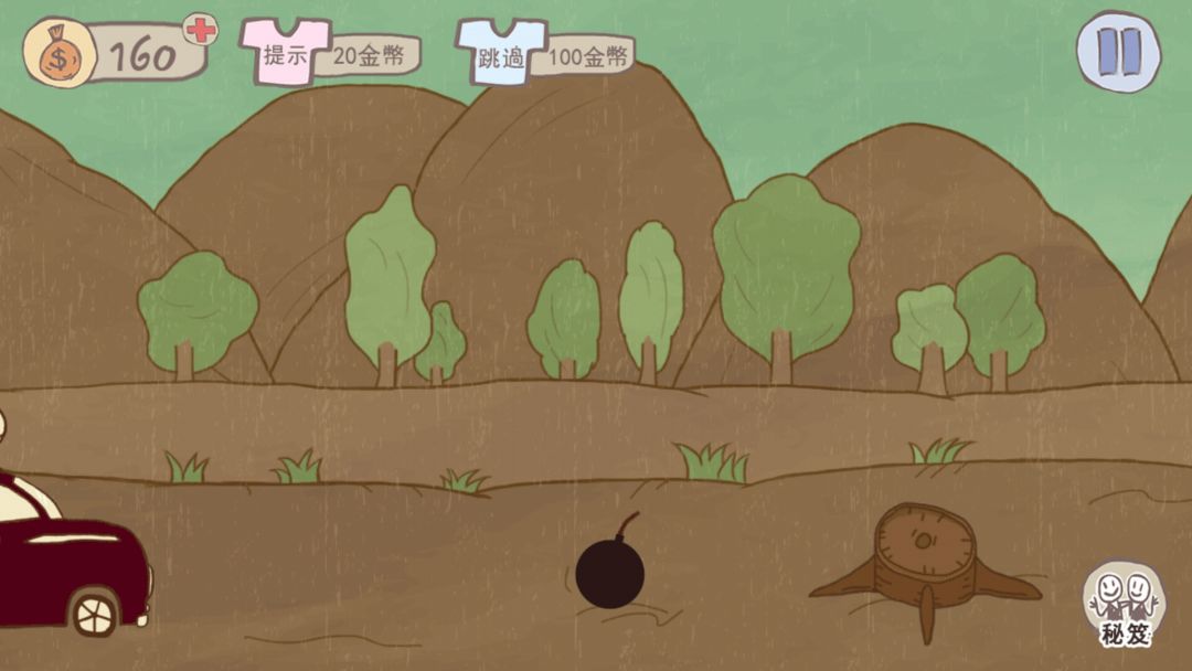 第七关 把树根往上面拉,小车点一下在不到炸弹范围内,炸弹会爆炸,然后开小车即可