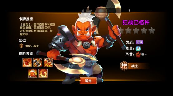 狂战士为6能量英雄,搭配(圣骑士塔尔克,萨满,雅典娜,克拉拉),法术宝典为(隐身,狂暴,石化,冰冻与回收)英雄放置为1号位有效迅速扩大我方战局让敌方迅速减员。瓜皮是这么认为的!英雄评分: