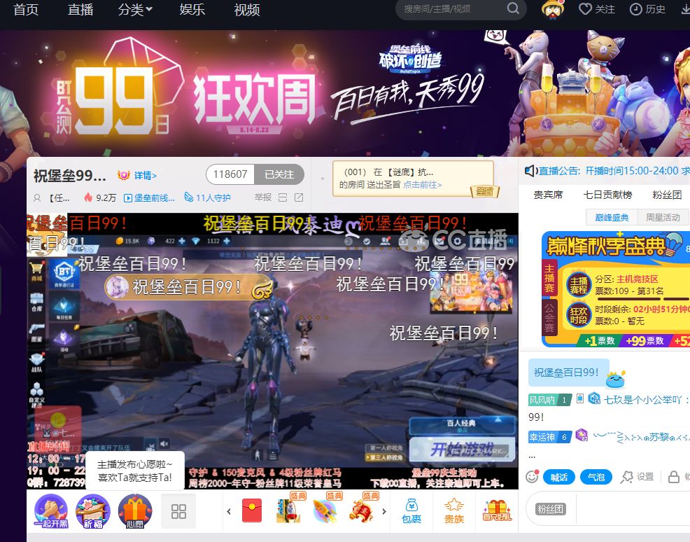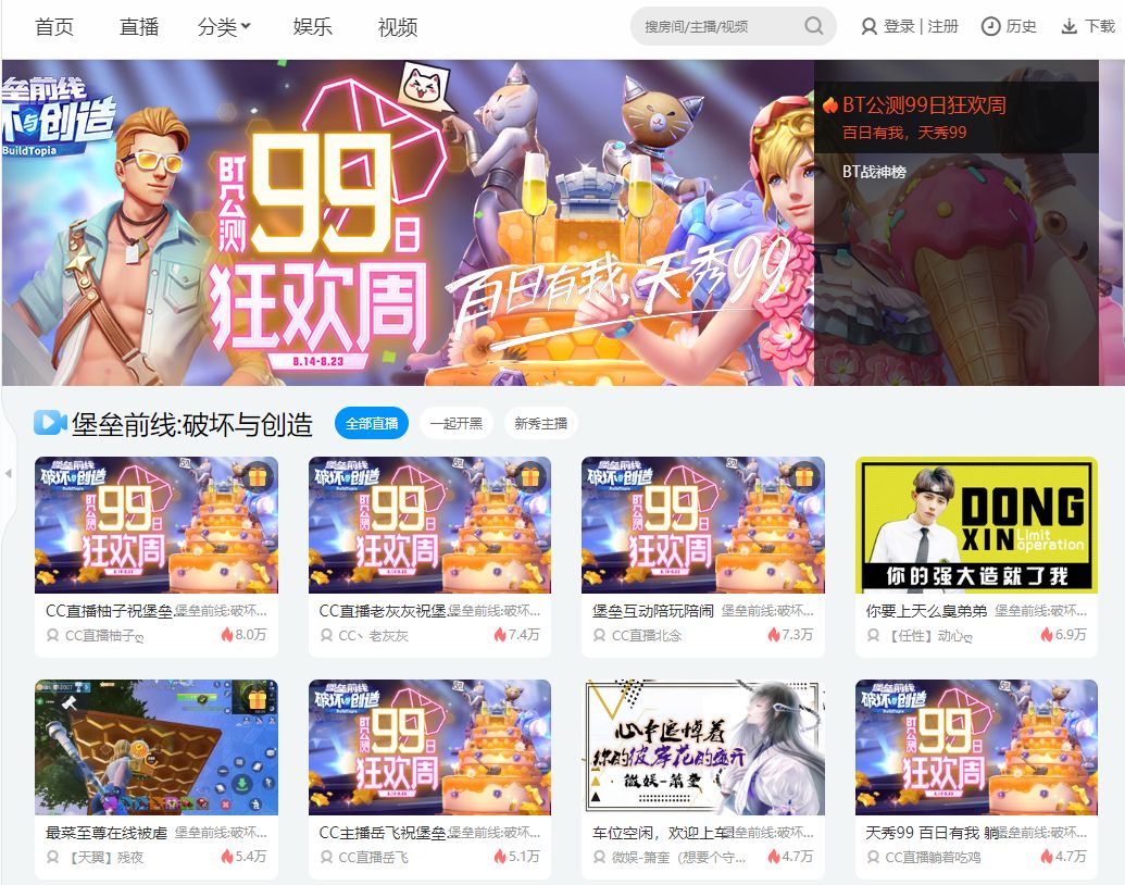 在8月22日,《堡垒前线》上线99天纪念日当天,这四大平台直播间还统一送上了祝BT99封面和房名。在当晚的23:55,游戏主播也来到直播间中,与观众一起倒数《堡垒前线》公测百日的到来。为了感谢探险家的支持,《堡垒前线》和游戏主播,也为前来参与这一活动的幸运探险家送上99元现金好礼,期待他们能够在未来,继续关注《堡垒前线》的每一次成长!