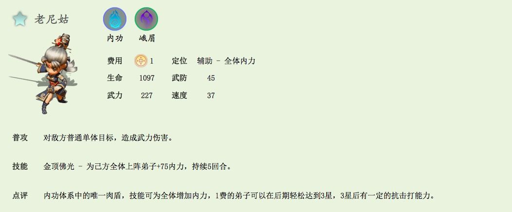 大家好!今天我们来详细介绍《武侠Q传自走棋》中的内功弟子。《武侠Q传自走棋》的内功职业阵容中目前共开放了6名弟子,以下详细列举给大家。