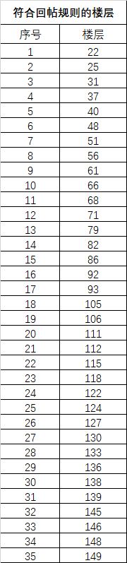 经次元娘的认真统计~这次的活动中,符合回帖规则的楼层一共有35楼,如图~