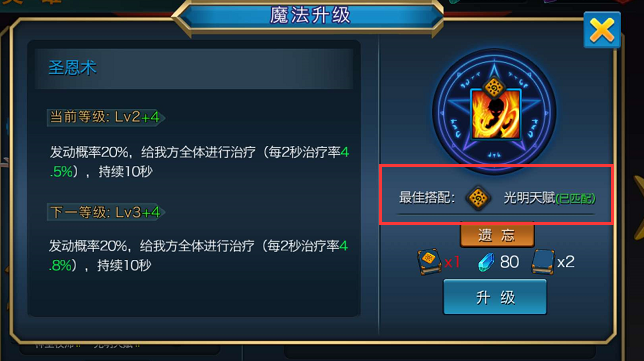 看到了嘛!有最佳搭配提示,只要搭配上对应系的技能和天赋,那简直就是只能用爆炸两个字来形容!(发动概率上升,魔法等级大幅提升,能不爆炸么?!)