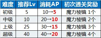 ※关卡通关奖励中的魔力棱镜仅在初次通关时获得。