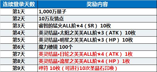 累计登录奖励中可获得的圣晶石数量更新!