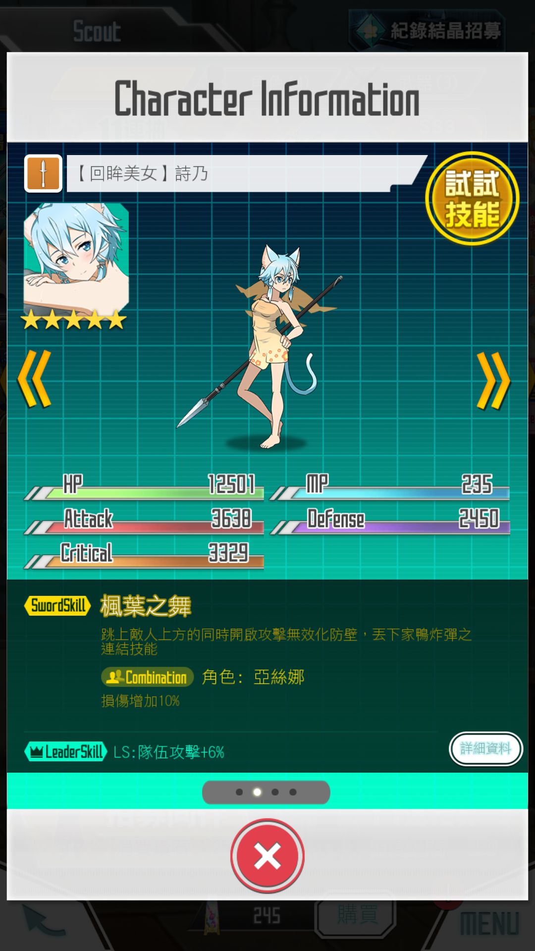 连携对象是亚丝娜,对于泳装娜有较大提升。