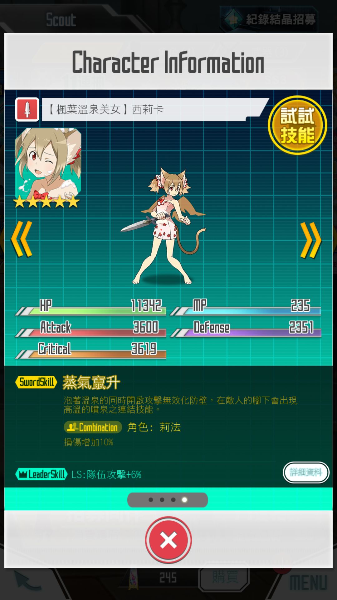 连携对象是西莉卡……emmm没有水西暂时比较尴尬