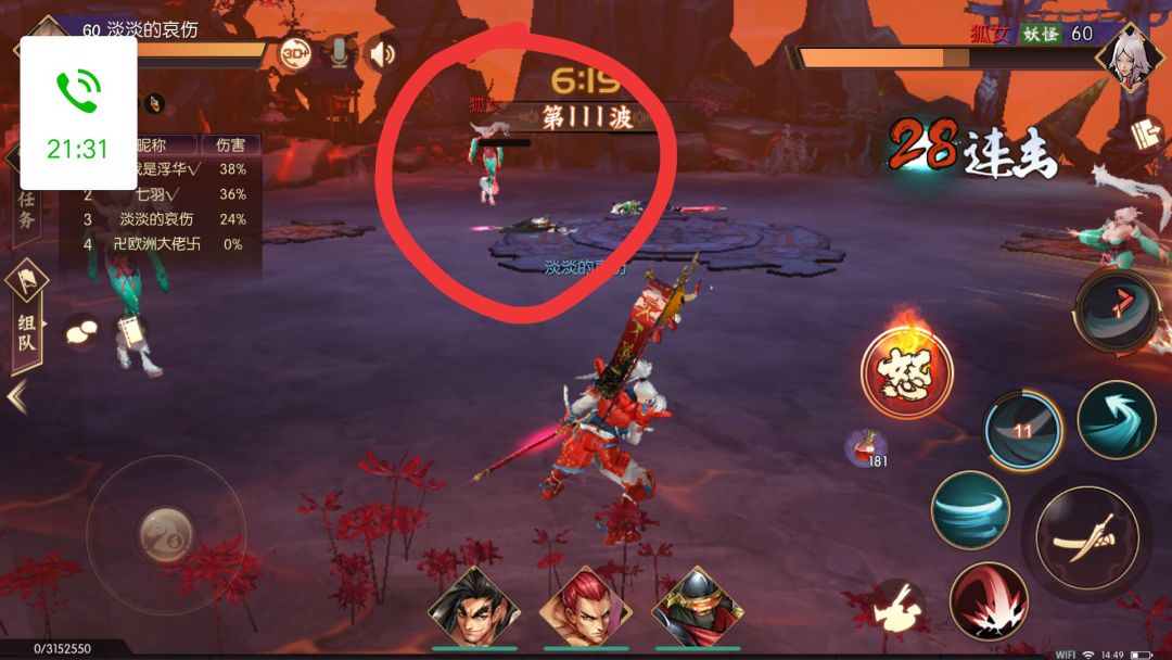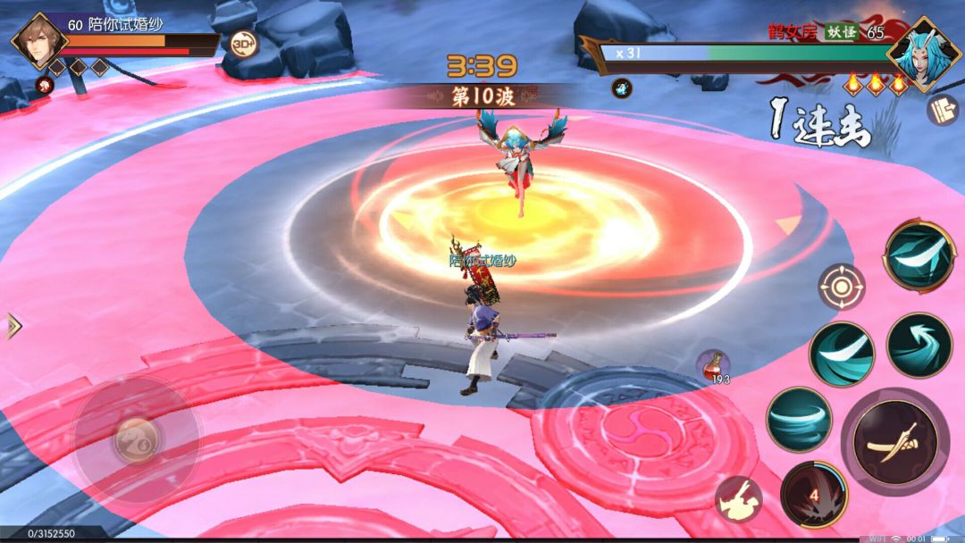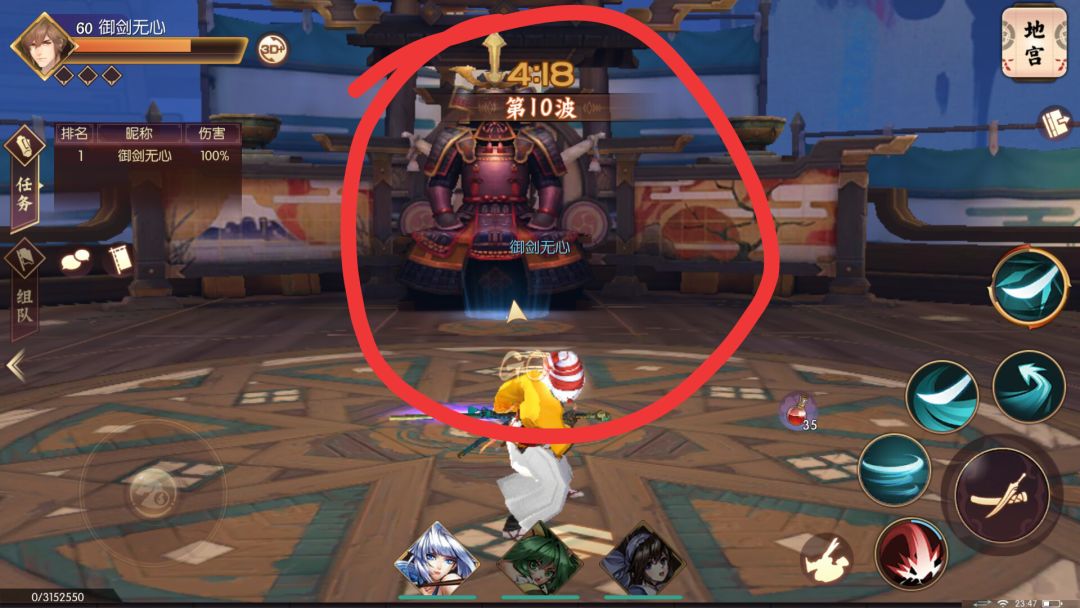 鹤女房进场会先手冲撞,伤害不高。反手觉醒控制打输出就行。注意它秒人技能。红圈技能接原地旋转直接觉醒躲。