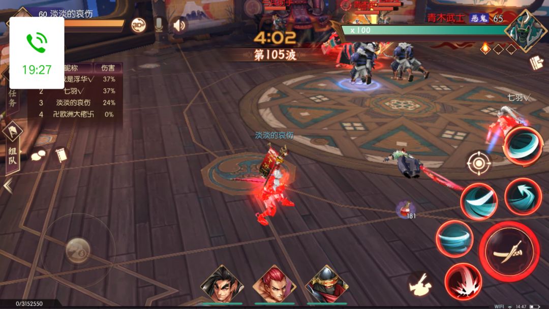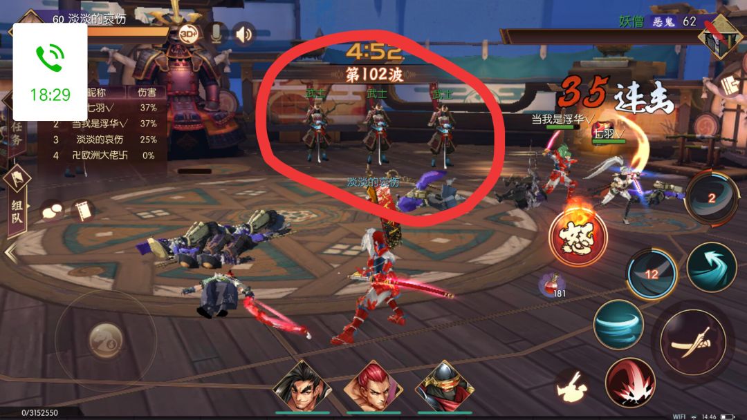 红叶狩是最危险的一个boss,进图以后如果不是狂刀或者巫祝类高双抗职业,建议直接起手觉醒。宁愿浪费也别失误被秒。四个人轮流放觉醒。觉醒打完就溜。等队友觉醒浮空或者僵直boss之后。再去偷伤害。