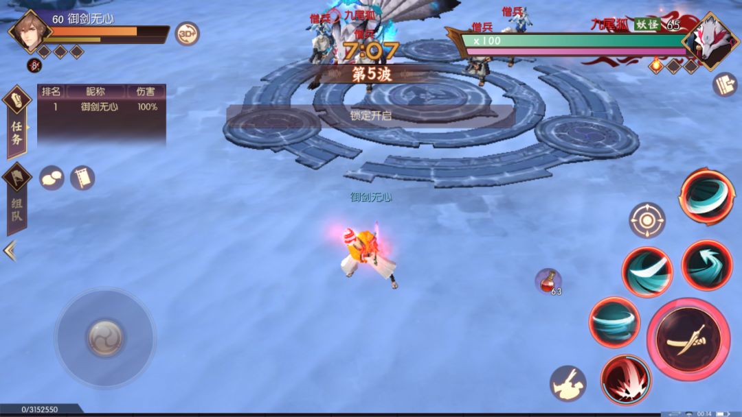 九尾狐进场会释放范围冰冻。离远点就行。注意它秒人的技能。冲撞。走位躲伤害。