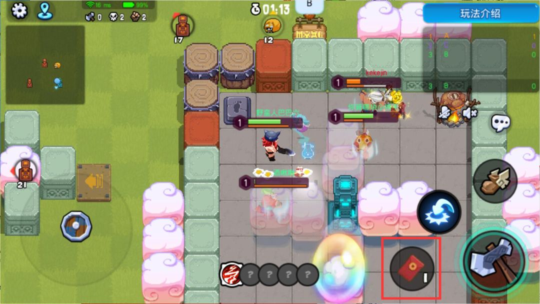 3. 【红包】道具需要攻击后才会捡起,点击背包栏【红包】及可原地放下红包