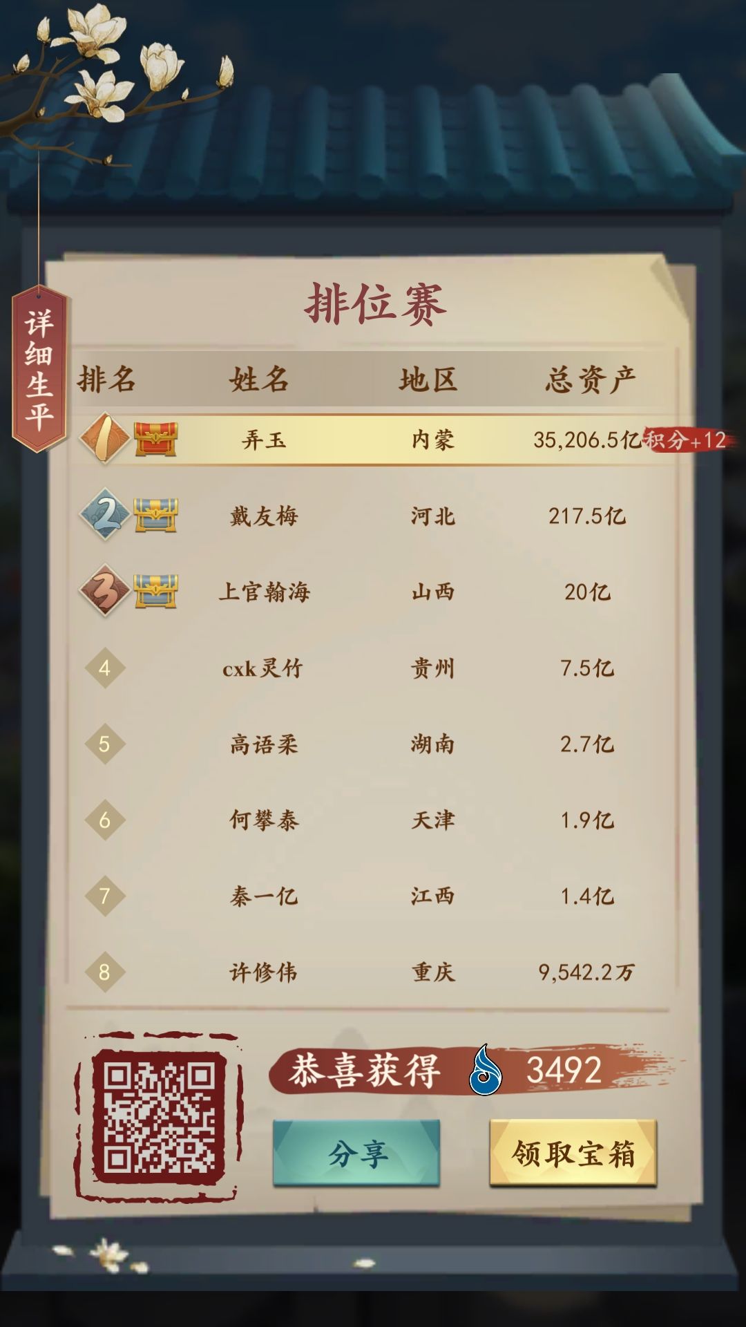 最后附上几张辉煌的截图。感谢狐妖大大最后帮我把总资产翻了一番还多。