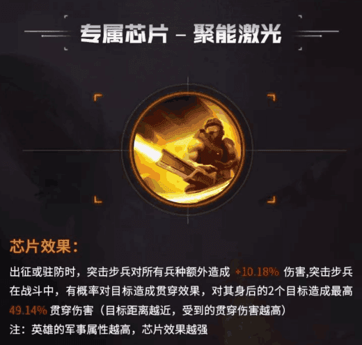 聚能激光能够让突击步兵在进攻战斗中,更好击溃敌人的防御坦克,从而打击到敌方脆皮部队。