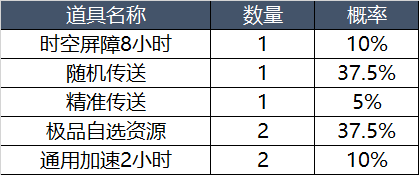 阶段一:本阶段每次抽奖需要消耗30金条+掷骰券*3,奖励内容及概率如下: