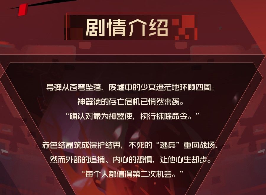 从战火中幸存,从魔掌中逃脱,浴血奋战仅仅为了活下去。血红的碎晶撒落在亡命的路上,无尽的黑暗笼罩着脆弱的内心。一路背负“逃兵“的罪名,探索生存的意义。新篇章《赤贯的陨星》即将开启。
