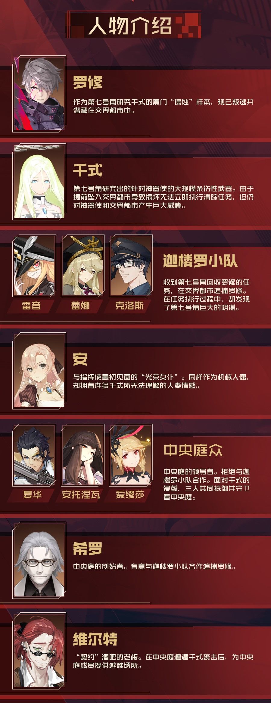 这次的新主线中,多方势力登场角逐,命运的交织错综复杂。在这场关乎神器使存亡的战争中,被第七号角当做研究对象的罗修、千式二人的命运最终将走向何处?希罗、迦楼罗小队、酒吧老板维尔特在其中又发挥着什么样的作用?中央庭众这一次是否能够成功阻止最终武器,让我们一起拭目以待。