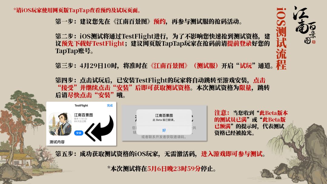 ★4月29日上午10:00,通过浏览器/TapTap客户端进入《江南百景图》链接(测试服)页面。