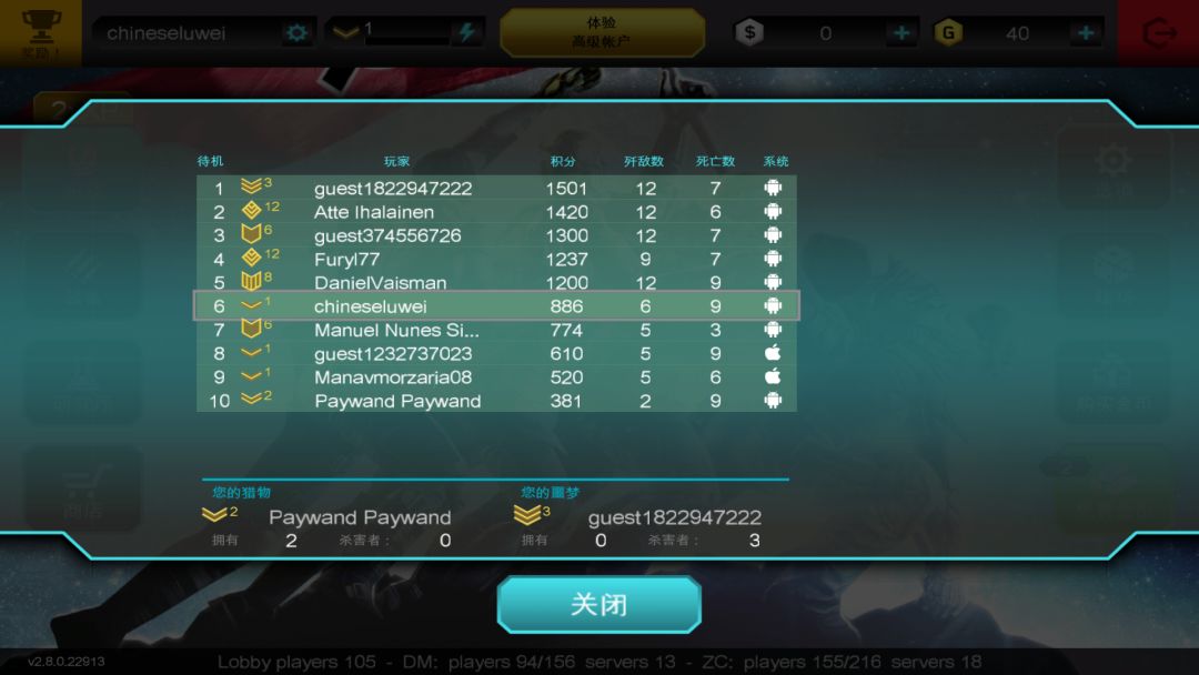 第三人称视角的射击竞技游戏,刚开始还不习惯,慢慢就好了,玩起来挺刺激的,画质也不错,下图是第一局战绩。