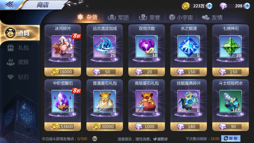 1、有钱了当然是去消费,所以钻石第一大用途就是可以在商店购买稀有物品。商店物品售罄后也可以通过花费钻石刷新。