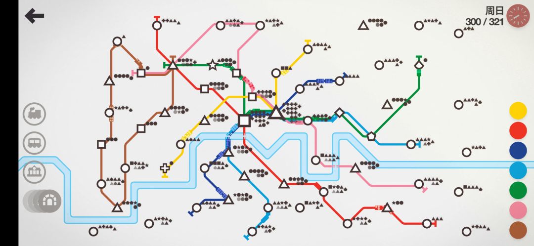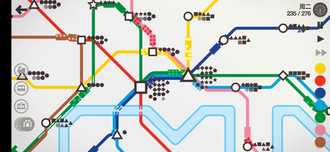 这里引入一个小问题,在前面几期中提到过特殊站点专线的问题,能大大缓解客运负担量,将换乘站尽量集中,不过嘛……如果专线在连接特殊站点的同时连接了好几种普通站点作为换乘站,由于以普通站点为目标的乘客还是大多数,且专线有乘客就会带上,才不管你设计的目的是啥,专线被普通乘客挤爆仍然会很大程度上影响到整体运输