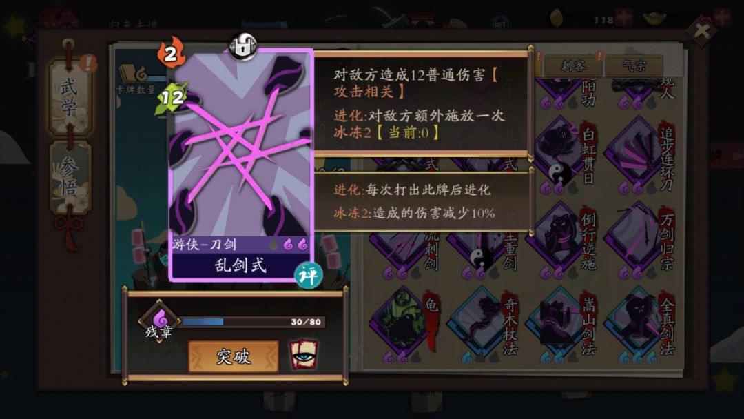 可以看到,不可不戒的连击回怒气完美契合剑魔武学(同时雪山剑法的连击也契合,一般不会存在不够怒的情况。),配合利剑无意无消耗打出还能回怒。这里,乱剑式的效果很好(在强调一下不要升级,多次打出冰冻层数叠的很快。),没有乱剑式用雪山剑法也行,只是会慢很多。在历练中。剑魔被动是全体冰冻,可以做到每个人叠的冰冻相差不了多少,这也是不太需要乱舞的原因。叠冰冻速度也快。注意不可不戒的武学最好不要删掉,利剑无意能免消耗打出,抽出兰花指(升级过的),能无限复制利剑无意,成为永动机。