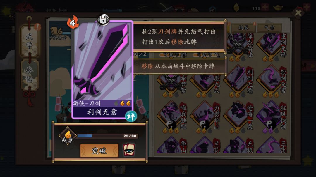 只有明唯我独醒的必拿(一张就够)。有暗唯我的可拿可不拿。在这里强调一下,升级多个词条循环,千万不要升级!!不要升级!不要升级!小小解释一下就和暗唯我一样,上了循环,利剑无意只会打出一次。