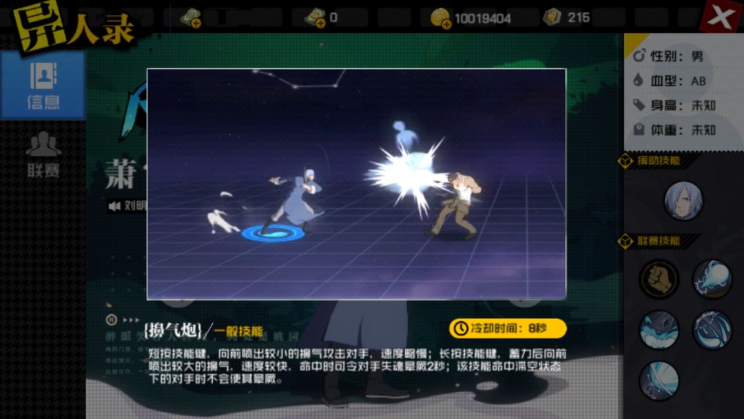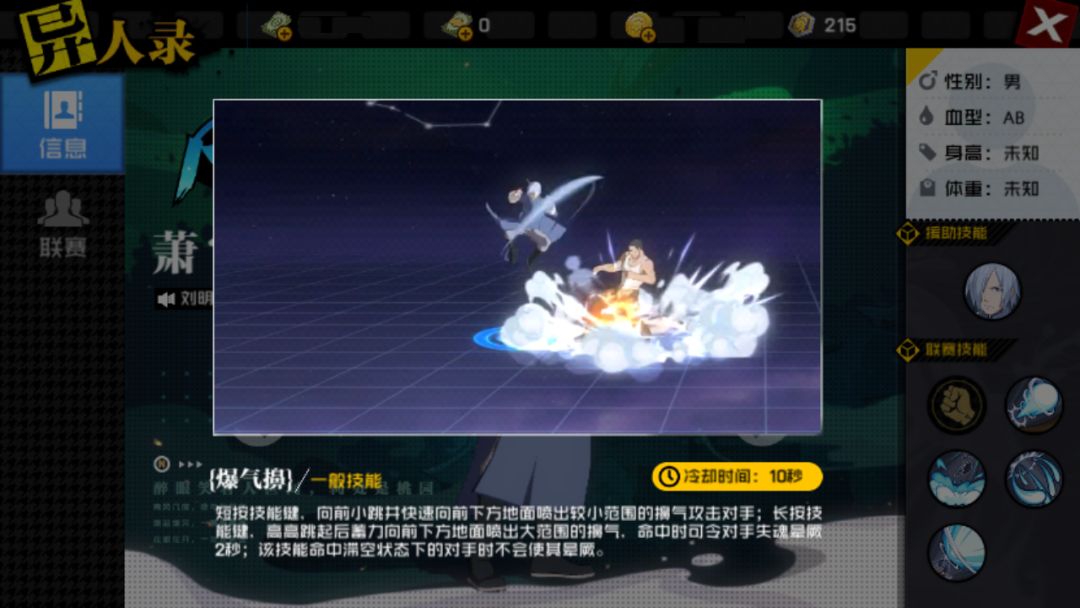 萧霄在联赛中可使用的技能有四个,分别为擤气炮、爆气擤、连珠擤和一气碎魂。其中普通攻击是连续四次快速的拳脚攻击,只要走位合理,可以说是非常不错的起手技能,这也是中高段玩家常用的博弈手段,玩家千万不要小看普通攻击的地位和作用。