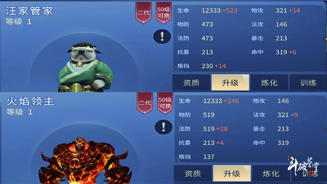 汪家管家主要是物理攻击力和格挡值高,火焰领主则是物理防御、魔法防御和法术攻击力高,其余属性相差不大,增加的斗气值在10000左右。魔兽的资质怎么才算好呢?大家请看下图,4项资质都占到百分之八十以上,成长率再达到恐怖如斯,那么恭喜你,你拥有了一个极品魔兽。