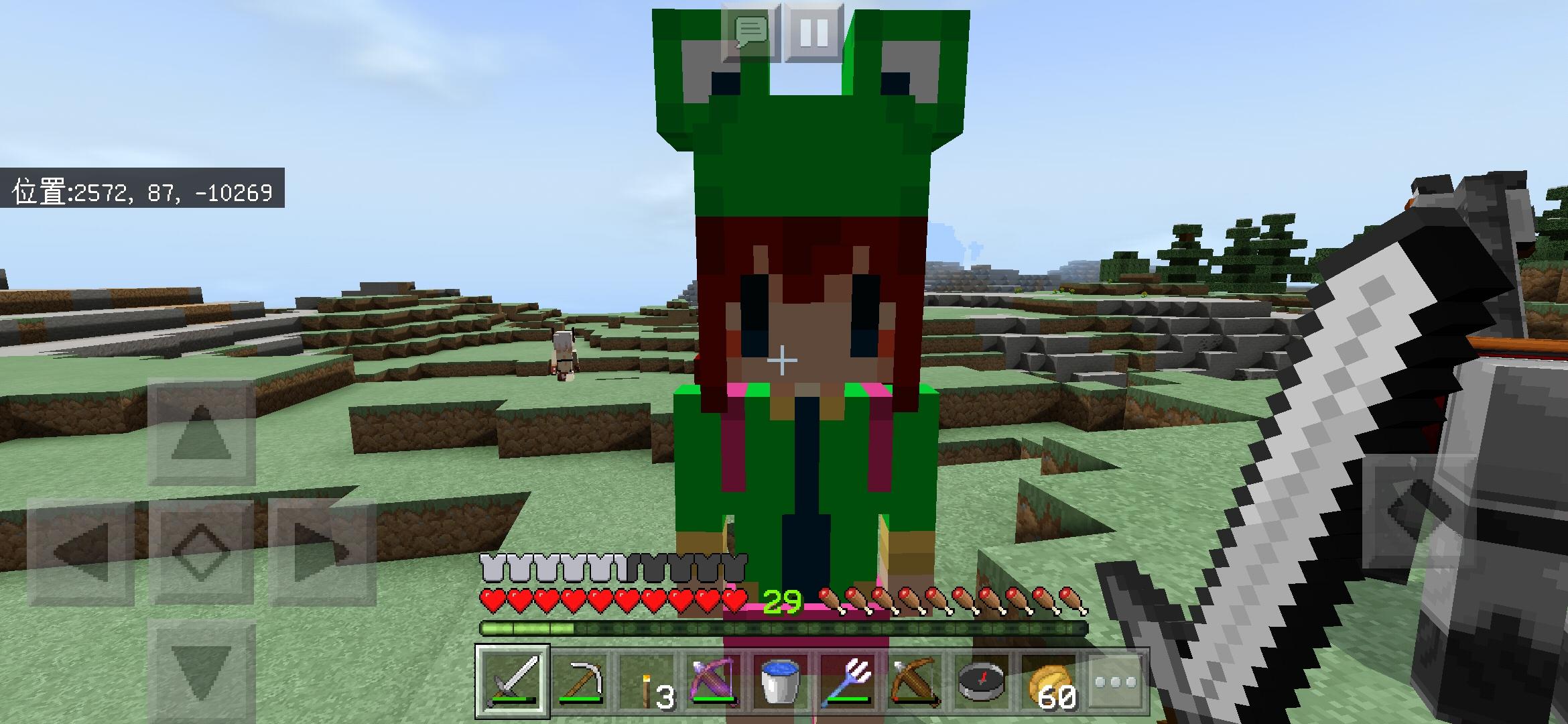 这个是加了娘化材质包的。材质包关掉就不显示,但是碰撞箱还在,也可以对它造成伤害。似乎是中立生物,铁链甲一套它打我伤害一格血。(所以说这啥?)wiki上查了也没有(似乎是在高原地形生成的,创造模式刷怪蛋也没有。版本1.14