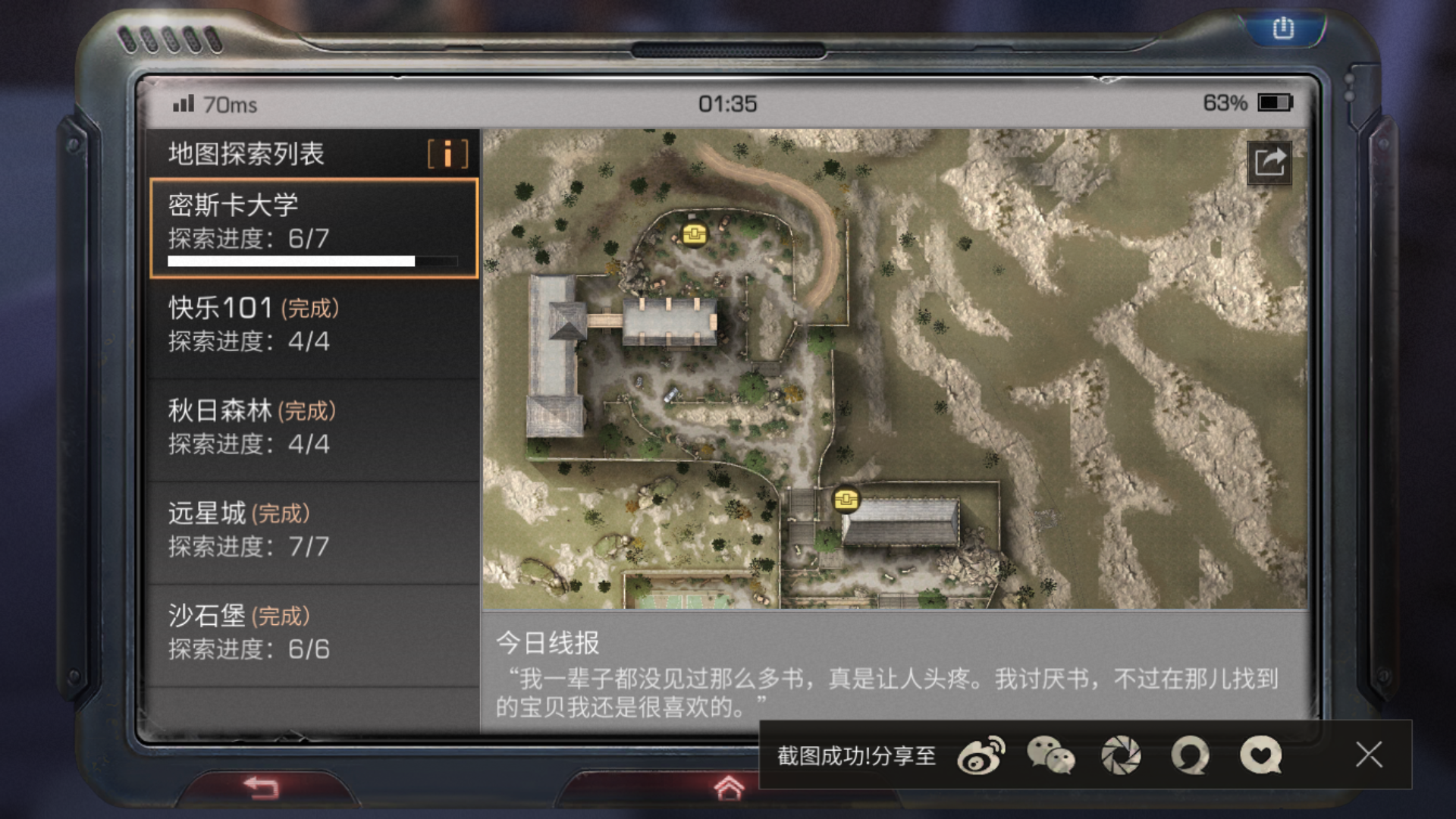 大学的宝箱已经找到6个,还有一个呢没找到,知道的麻烦告知我。