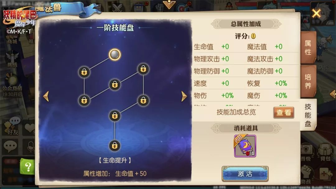 魔导士们只要消耗晶圆或者技能书道具,便可激活技能盘中的技能获得永久属性提升或者强化某个技能。
