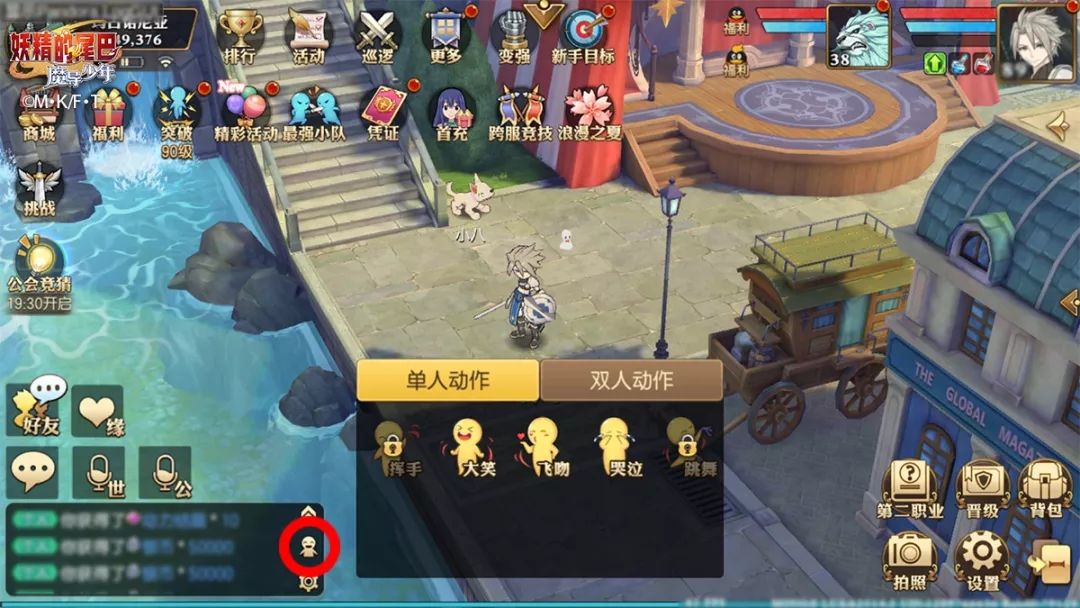 魔导士们可通过夸克积分,在商会兑换解锁自己喜欢的动作,在获得社交动作之后,便可以在聊天框右侧,点击小人选择想要做出的动作,角色便会施展“飞吻”、“挥手”等等啦!
