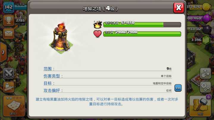 地狱塔:在我们大本营等级达到10级时即可解锁地狱塔,这个建筑具有变化性,单体状态下可以造成递增(时间越长伤害越高),但是目标只有1个。多体状态下可以攻击周围的多个敌军(伤害固定),所以战术使用上可以根据阵型搭配做调整,本身也属于C为防守。
