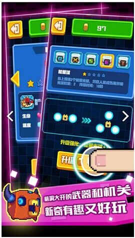 每个关卡里都刷出大量的小怪,想像一下,大大小小怪物追逐着你,还有各种弹幕,是不是很刺激!是时候展现战争的技术了,在子弹从中穿梭,在怪物堆里进进出出,就是如此的潇洒!