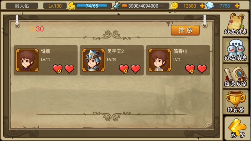 点击主界面的“酒馆好友”即可打开好友系统界面: