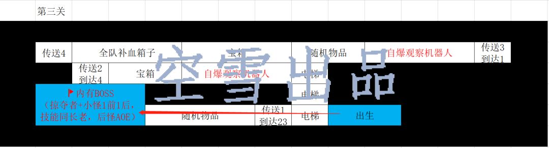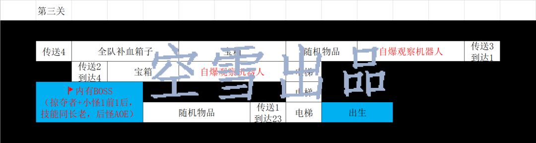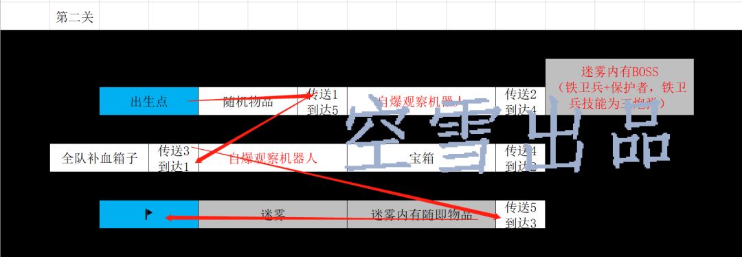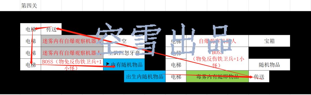 1、由于本图中存在部分传送门,为单向传送,其落点传送的地方非该传送点,故部分传送房间写的是“传送1/到达5”,意为:该传送点传送去往标注为“到达1”的房间,该房间亦可以从标注为“传送5”的房间传送到达;如仅标注“传送X”,则其为双向传送,其落点亦可传送回该处。